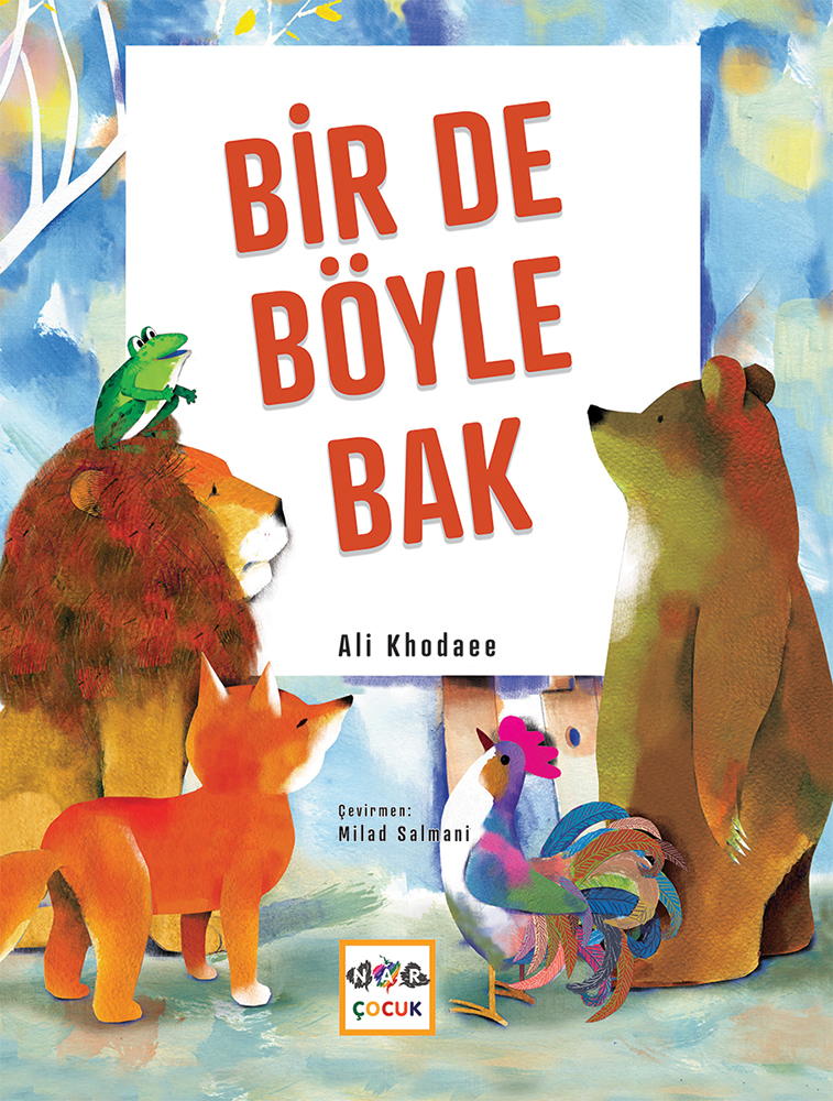 Bir tabloya bakan aslan, tilki, horoz, kaplumbağa ve ayı...